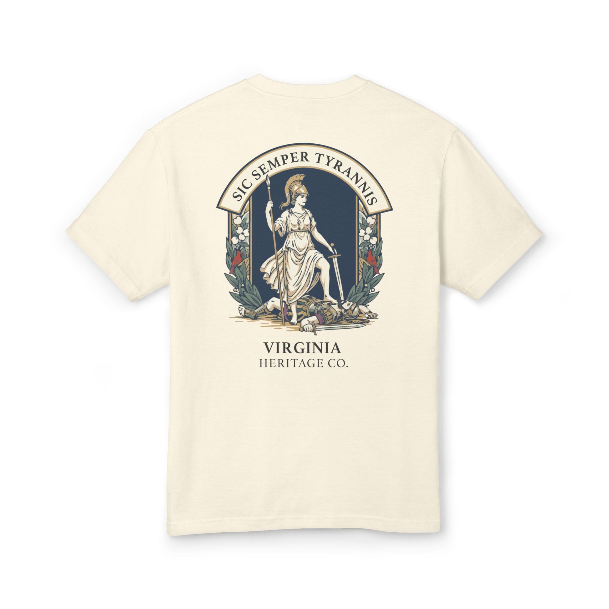 This is more than a t-shirt; it's a statement of Virginia's foundational spirit. Featuring a custom, detailed graphic of the Commonwealth’s motto, Sic Semper Tyrannis ("Thus Always to Tyrants"), this heavy-weight tee embodies a rich heritage of freedom and independence.